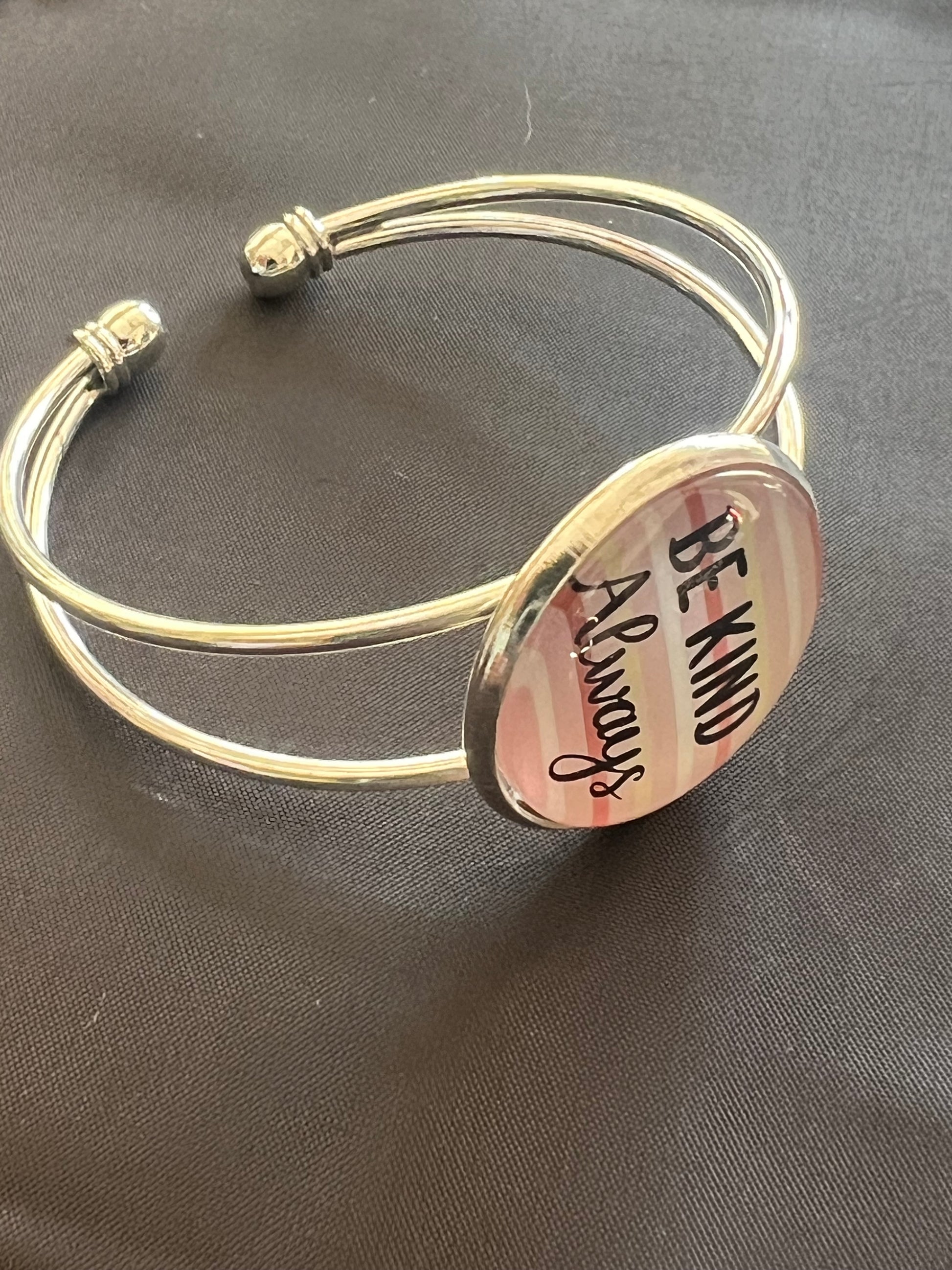 Let your wrist do the talking with this inspiring Kindness Radiates bracelet. Adorned with the gentle reminder “Be Kind Always” in bold typography on a warm-toned striped background, this piece is a wearable affirmation that kindness never goes out of style. Its minimalist metal band adds a sleek finish, perfect for everyday wear or thoughtful gifting.