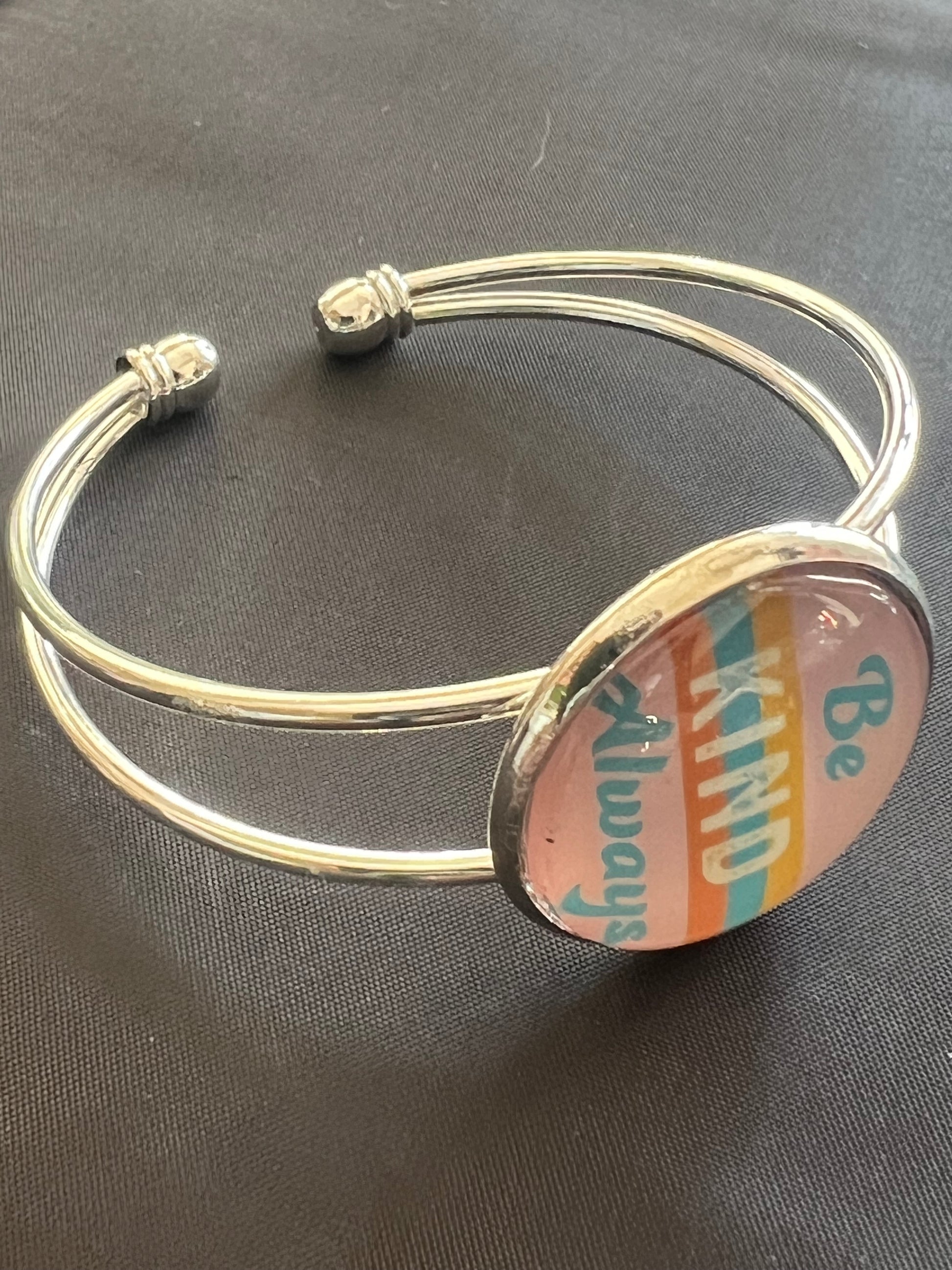 Let kindness be your style statement. The Everyday Compassion Cuff features a cheerful pastel rainbow design with the uplifting message “Be Kind Always” at its center. This silver-toned bracelet isn’t just an accessory—it’s a reminder to lead with love and empathy wherever you go. Perfect for daily wear, thoughtful gifts, or spreading positive energy.