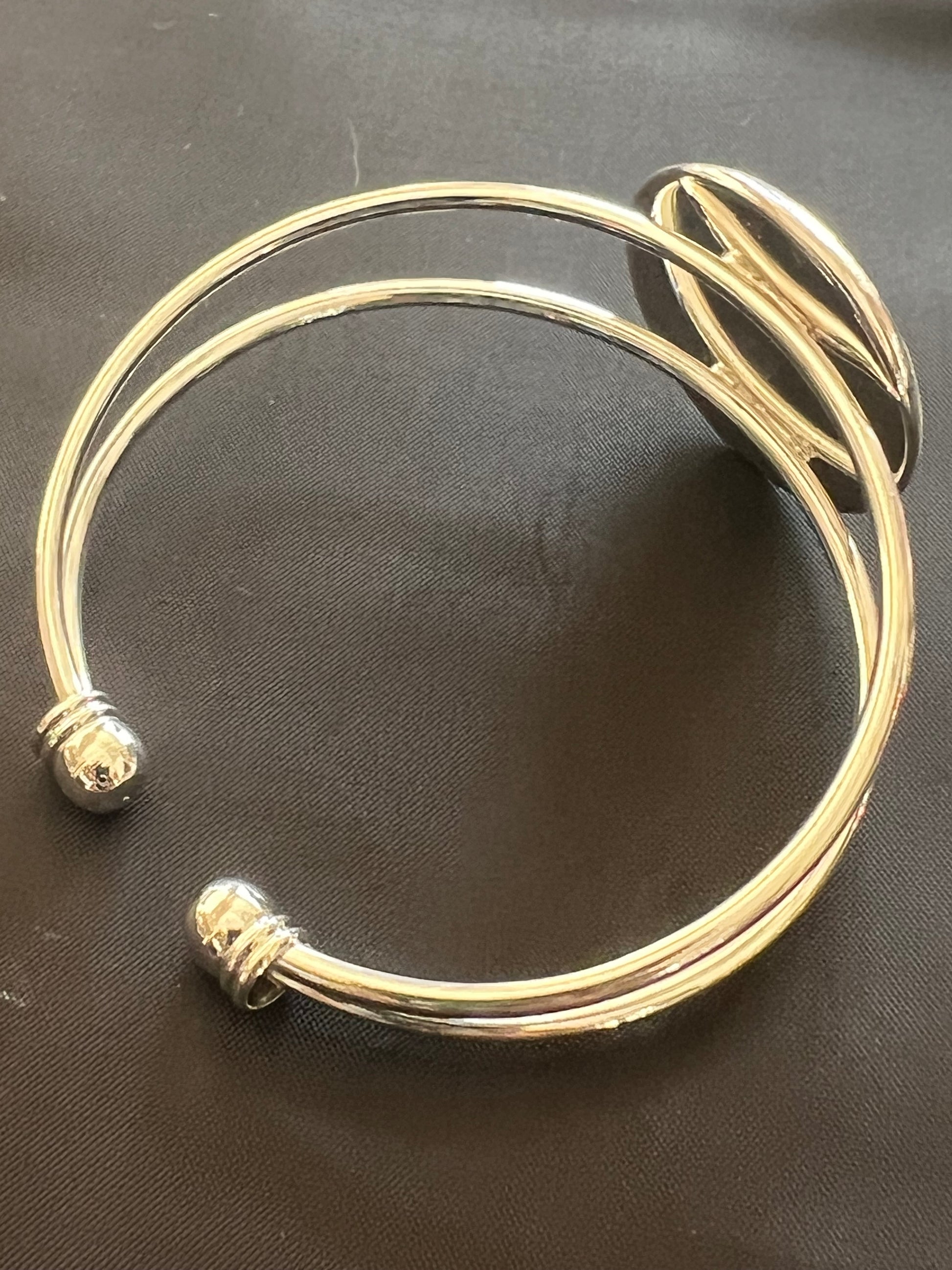 Silver-Plated Cuff: Polished finish with an open design for adjustable sizing