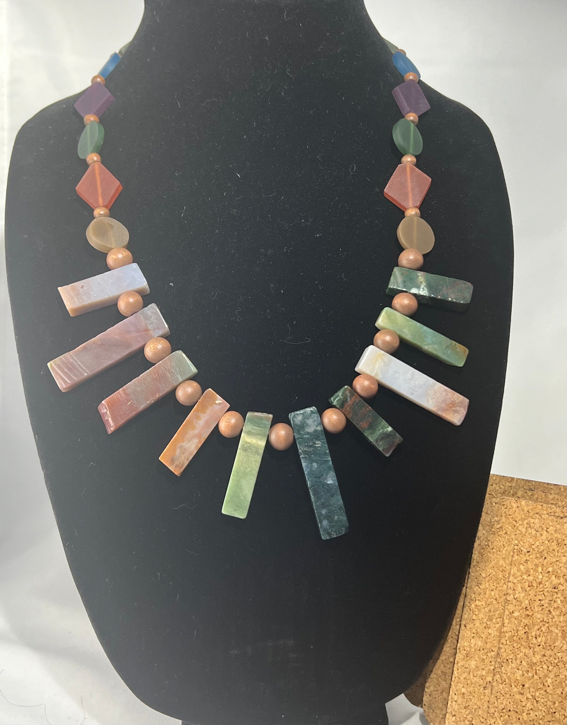 Multicolor Bar Necklace – Geometric Natural Statement Piece