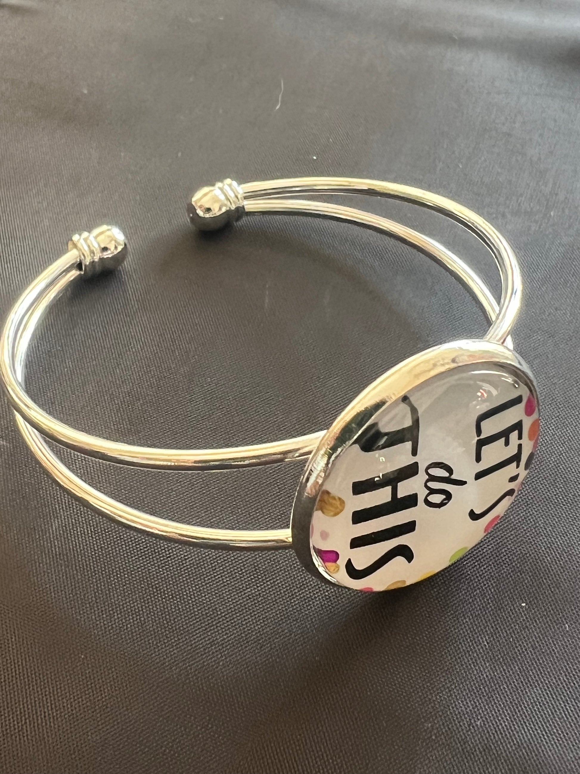Fuel your ambition with the Go-Getter Cuff, a silver-tone bracelet featuring the energizing message “Let’s Do This.” Surrounded by playful polka dots in bright hues, this bold design delivers a punch of motivation and positivity—perfect for goal-setters, dream-chasers, and everyday warriors.